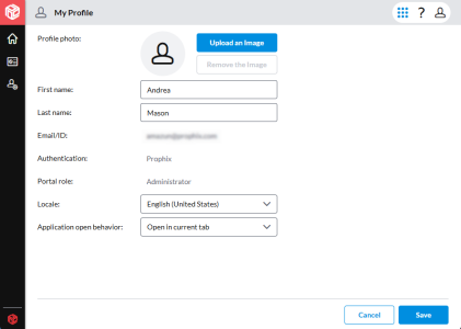 Your profile contains your basic information as a Portal user. The way your name is recorded in your profile is how it appears across all Prophix One applications.