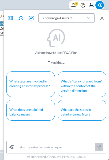 Prophix One Copilot is a set of AI virtual assistants that can help you use Prophix One applications.